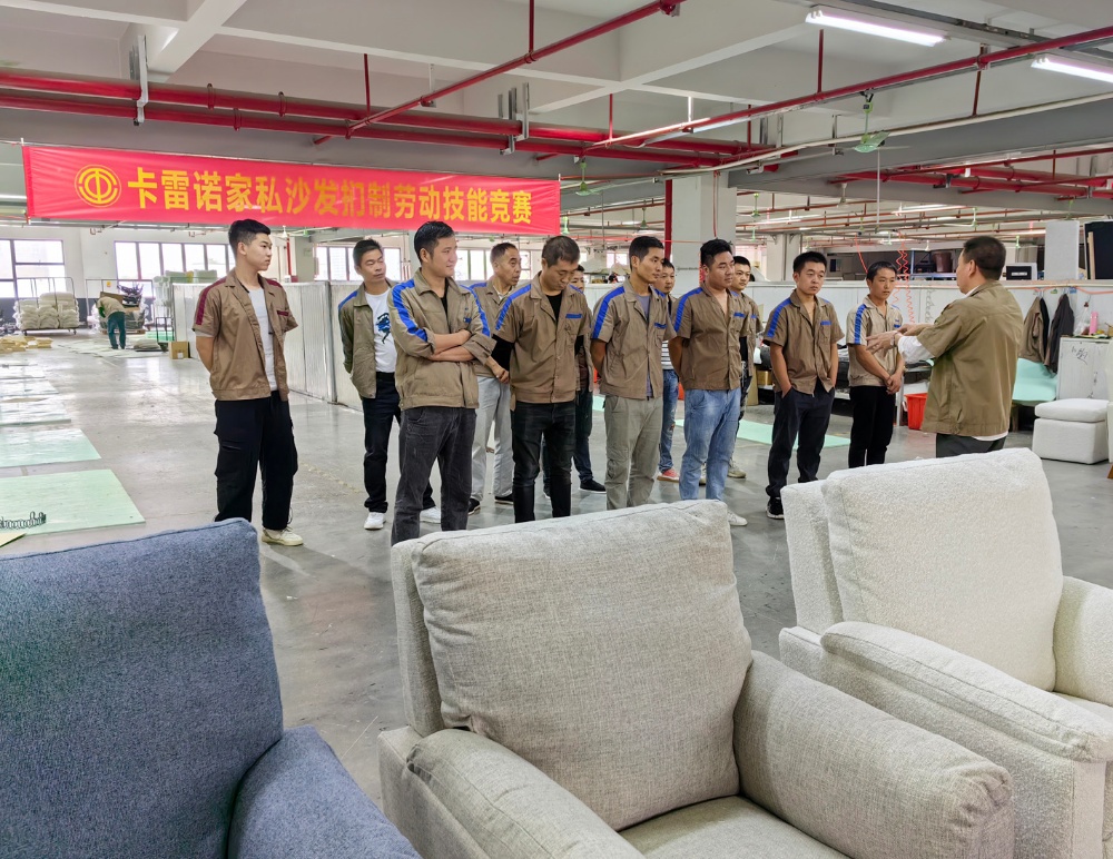 為貫徹黨的二十大精神,在全社會(huì)弘揚(yáng)勞動(dòng)精神、奮斗精神、創(chuàng)造精神,進(jìn)一步提高員工勞動(dòng)技能,激發(fā)員工愛崗敬業(yè)熱情,10月28日下午,海寧卡雷諾家私有限公司組織開展了沙發(fā)捫制勞動(dòng)技能競賽。