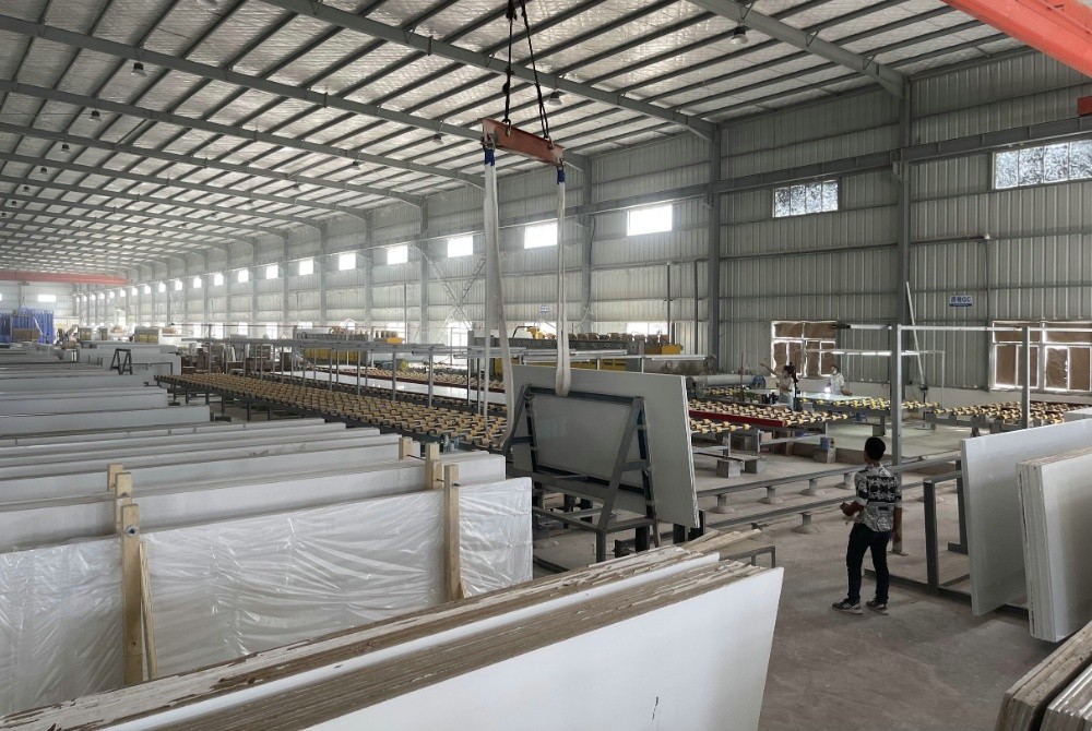 柬埔寨高金石有限公司是由福建磐珉新材有限公司于2019年11月在特區(qū)設(shè)立,主要生產(chǎn)可應(yīng)用于住宅和商業(yè)室內(nèi)裝飾的環(huán)保石英石板材產(chǎn)品,包括廚房臺面、浴室臺面、辦公桌、墻板等,項目分二期建設(shè),目前一期投資1000萬美元,建筑面積24000平方米,員工230人,年出口1800多萬美元;二期計劃擴(kuò)建用地28000平方米。