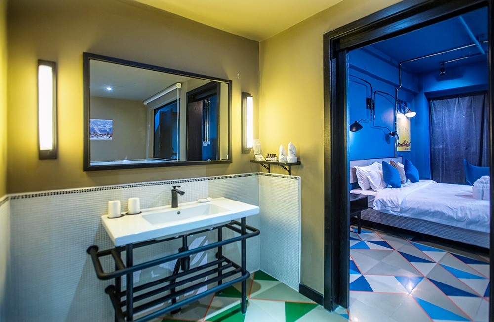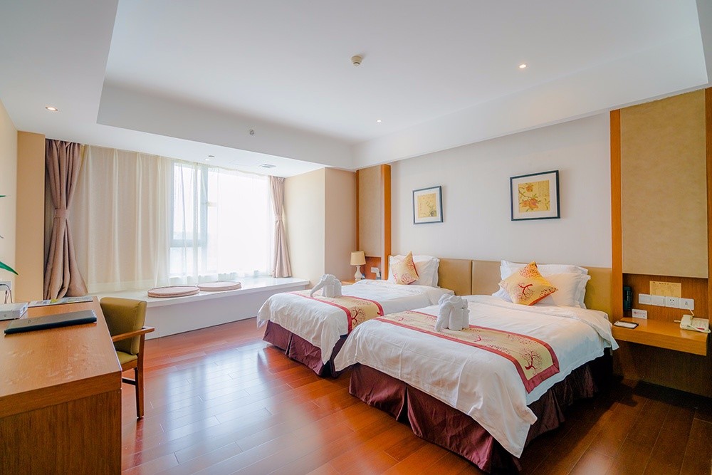 酒店有豪華溫泉大床房、豪華溫泉標(biāo)準(zhǔn)間、棋牌大床房、特色四人房等房型,特色是每間客房的平均面積有42平方米,有景觀(guān)飄窗、大浴缸、24小時(shí)熱水、干濕分離的衛(wèi)生間、WIFI全域覆蓋……硬件設(shè)施配套人性化。酒店的部分客房做成了童話(huà)藍(lán)的夢(mèng)幻風(fēng),夏天的時(shí)候特別受親子家庭的喜歡。