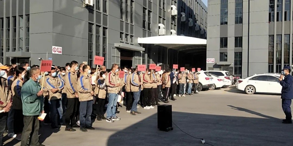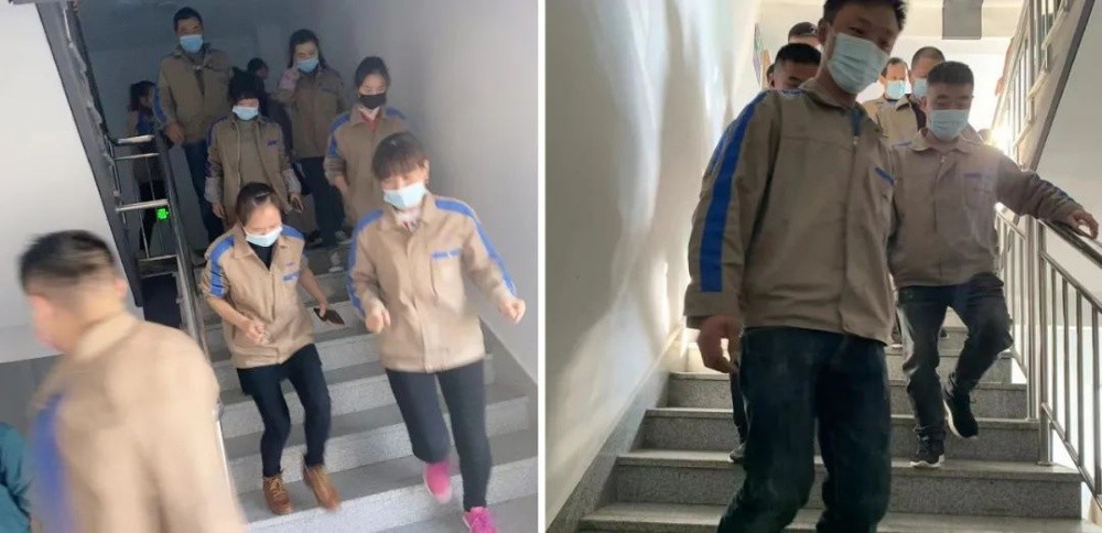 隨著警報(bào)響起,應(yīng)急疏散演練正式開(kāi)始,班組長(zhǎng)在各車(chē)間門(mén)口引導(dǎo)員工迅速離開(kāi)車(chē)間,員工用濕毛巾之類(lèi)物品捂住口鼻彎腰低姿快速有序地沿防火安全疏散通道向外跑,各部門(mén)負(fù)責(zé)人將員工引導(dǎo)至空曠安全地帶“緊急集合點(diǎn)”,隨即各車(chē)間主任清點(diǎn)人數(shù),并層層向上匯報(bào)。