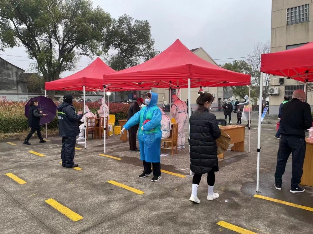 當天,是全鎮(zhèn)做核酸檢測的日子,黨員們帶著N95口罩,口袋里還放一小瓶消毒酒精,來到了鎮(zhèn)政府的核酸采集點,每位志愿者、黨員干部紛紛忙碌著,進大門的每一個人,志愿者都要檢查健康碼是否是綠色的,然后再測量體溫。一共有兩個通道,其中一個是愛心通道,老人和小孩都可以從愛心通道通過。排隊的人都留了一米遠的間隔,那是安全距離,防止病毒攜帶者交叉感染。公司黨員不顧淋著雨,口中重復著:這邊排隊,一米安全距離,打開健康碼,戴好口罩……