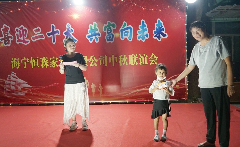 9月7日晚,一場別開生面的“喜迎二十大·共富向未來——海寧恒森家具有限公司中秋聯(lián)誼會”在路仲廠區(qū)的場地上完美呈現(xiàn)。沒有璀璨的燈光,沒有高檔的音響,亦沒有華麗的服裝和專業(yè)的演出技能,公司近200名員工簡樸地歡聚在一起,用歌舞表演等形式迎接壬寅中秋和二十大的到來;用圓桌圓盤等寓意中秋團(tuán)圓,十全十美。