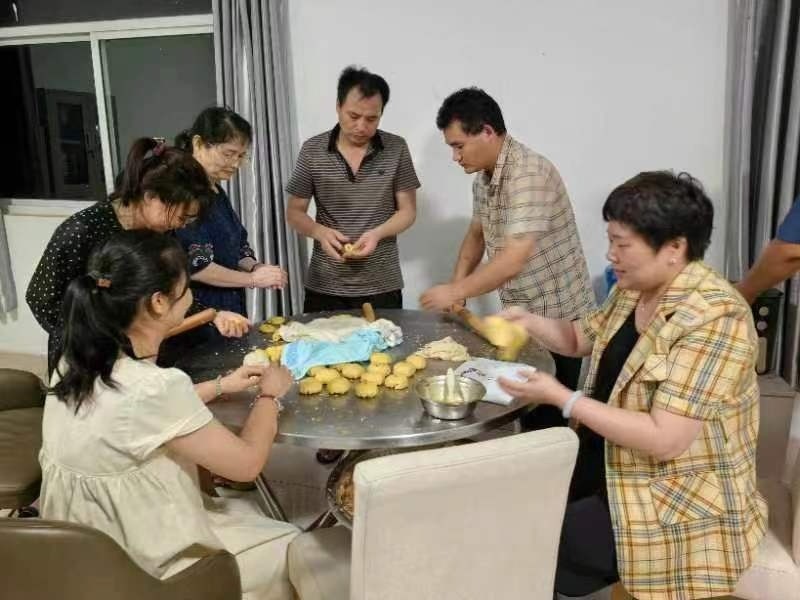 活動現(xiàn)場,大家熱情高漲,紛紛化身月餅師傅,熟練地揉面、加酥、調(diào)餡、壓制,分工明確,各展才藝,將對家人的相思揉進(jìn)了月餅里。在一片片歡聲笑語中,一個(gè)個(gè)寓意團(tuán)圓、美滿的月餅陸續(xù)成型。