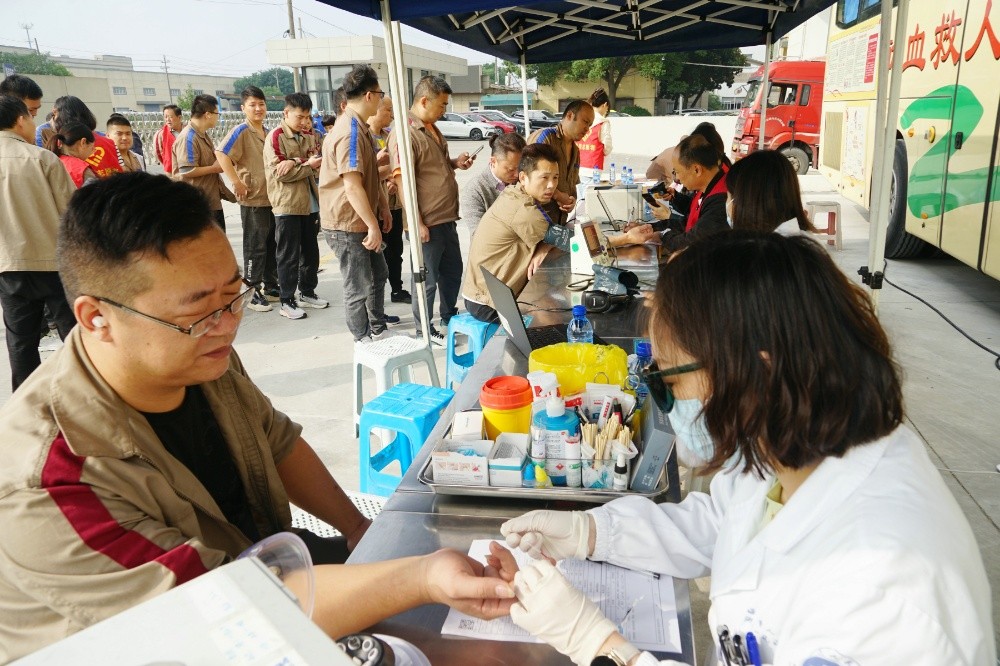 當(dāng)天上午,整個(gè)廠(chǎng)區(qū)洋溢著愛(ài)的暖流。只見(jiàn)大家在采血車(chē)前有序填寫(xiě)獻(xiàn)血登記表、測(cè)量血壓、征詢(xún)體檢、初篩采樣。隨后合格者上車(chē)獻(xiàn)血,奉獻(xiàn)愛(ài)心。