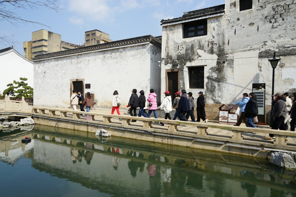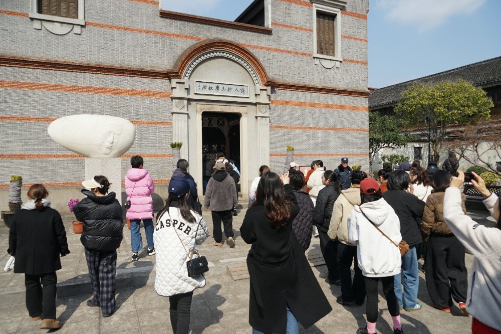步履輕盈如行云流水,魅力綻放似春風(fēng)拂柳。下午1點(diǎn)半,大家相約在中絲三廠文創(chuàng)園集合,隨后沿著塘河一路往北,來到干河街歷史街區(qū),參觀徐志摩故居。