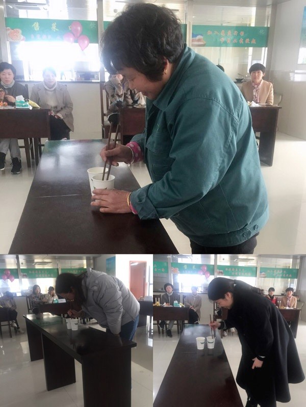 下午1點,報名參加活動的女職工們?nèi)缂s來到23樓,工作人員早已為大家排好座位,準備好了獎品和水果瓜子,大家根據(jù)抽簽序號到相應(yīng)位置落坐?;顒臃譃?/span>8組,每組5名成員,每名成員參加一項活動,最終根據(jù)得分排名。