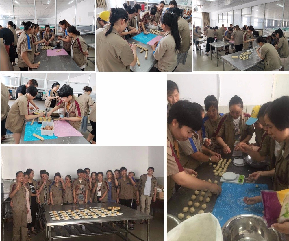 下午12點(diǎn),大家熱情積極地聚集在公司食堂。首先行政管理部經(jīng)理介紹了中秋傳統(tǒng)節(jié)日的起源和風(fēng)俗習(xí)慣。接著在烘焙愛(ài)好者的現(xiàn)場(chǎng)講解指導(dǎo)幫助下,大家擼起袖子加油干了,互相探討著做法,有的和面,有的調(diào)制餡料,有的搟面皮,有的包月餅……大家精心制作著,忙得不亦樂(lè)乎。做好的月餅排列在烤盤(pán)上,就像一個(gè)個(gè)等待檢驗(yàn)的士兵,接受過(guò)“烤”驗(yàn)后,一盤(pán)盤(pán)月餅端出烤箱時(shí),那濃郁的香味立即飄散開(kāi)來(lái)。不得不說(shuō),令人饞涎。大家紛紛圍坐一起,品嘗著自己制作的月餅,享受著親自動(dòng)手的快樂(lè)。同時(shí),恒森志愿者們給黃灣養(yǎng)老院送去中秋祝福及慰問(wèn)品,陪老人們提前過(guò)了中秋節(jié),香香的月餅包裹著濃濃的情誼,老人們心里樂(lè)滋滋的。