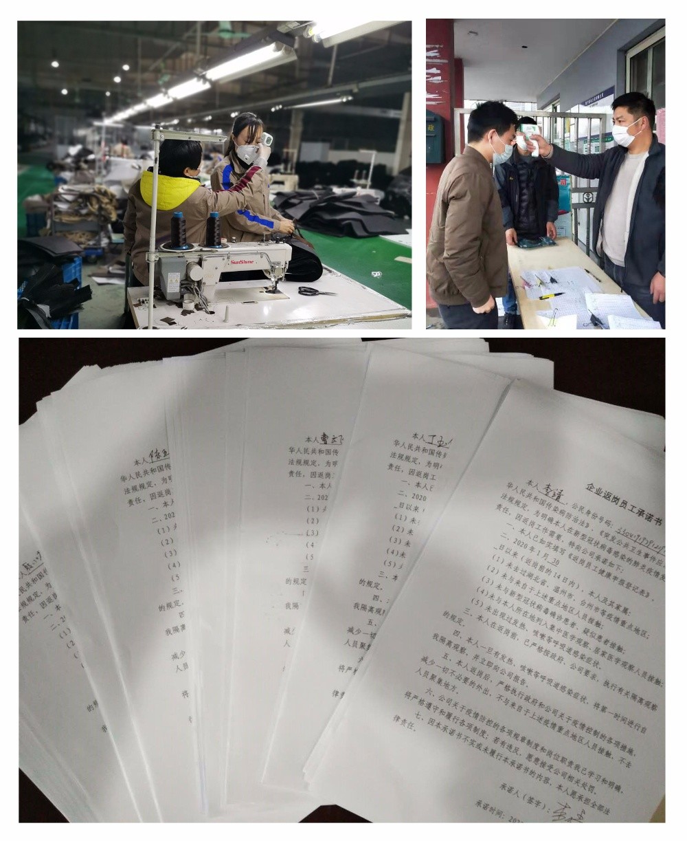 上班第一天,與每位員工簽訂《企業(yè)返崗員工承諾書》,明確責(zé)任。同時要求員工在崗時配戴口罩,勤洗手,少聚集,配合公司做好體溫檢測等。