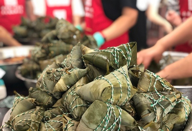 當(dāng)然中間也有不少前來學(xué)習(xí)的員工,瞧,集團(tuán)黨委周書記正親自授課呢!大家在各位老師傅的帶領(lǐng)下,由生到熟、由笨到巧,這粽子也是越包越好看了。