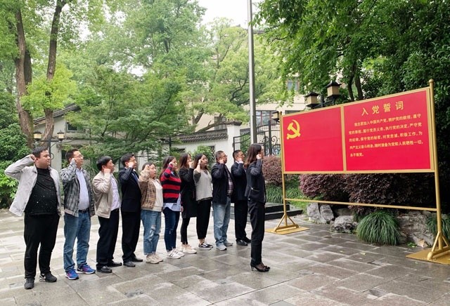 下午3時(shí),黨員們?cè)谥脴I(yè)公司會(huì)議室刷卡簽到后,隨即來(lái)到了北山路上的中國(guó)共產(chǎn)黨杭州歷史館進(jìn)行考察學(xué)習(xí)。雖然下午的天氣陰雨綿綿,但參觀的人群仍然絡(luò)繹不絕,把面積不大的場(chǎng)館擠得滿滿當(dāng)當(dāng)。在講解員的介紹下,黨員們參觀了館內(nèi)全部三個(gè)展廳,這三個(gè)展廳分別展示了1921年至1949年黨領(lǐng)導(dǎo)下的杭州新民主主義革命歷史、1949年至1978年杭州社會(huì)主義革命和建設(shè)的歷史、以及1978年至2018年40年來(lái)杭州地方黨史的發(fā)展歷程,重點(diǎn)展示了以習(xí)近平同志為核心的黨中央引領(lǐng)中國(guó)特色社會(huì)主義進(jìn)入新時(shí)代以來(lái)杭州經(jīng)濟(jì)社會(huì)各項(xiàng)事業(yè)在發(fā)展中取得的輝煌成就。通過(guò)展廳內(nèi)一幅幅珍貴的歷史照片和幾百件各個(gè)時(shí)期的歷史文物,黨員們了解了杭州地方黨組織領(lǐng)導(dǎo)人民進(jìn)行革命、建設(shè)的奮斗史,看到了杭州人民在黨的領(lǐng)導(dǎo)下,敢為人先、追求卓越、為爭(zhēng)取國(guó)家獨(dú)立民族解放立下的功勛,以及為探索社會(huì)主義道路90余年艱辛的歷程。隨后,在支部沈書(shū)記的帶領(lǐng)下,黨員們還在館內(nèi)宣誓墻前,重溫了入黨誓詞。