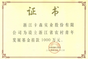 ▲ 2007年,海寧市創(chuàng)建慈善基金,集團(tuán)設(shè)立卡森留本冠名基金1500萬元,至今累計(jì)捐贈(zèng)545萬元,用于助困、助學(xué)、助教、助殘;